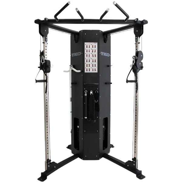 Brand new TKO light commercial functional trainer! Great for a home gym, personal training, or a commercial facility! This functional trainer is equipped with dual 160lb weight stacks and comes with an assortment of attachments.